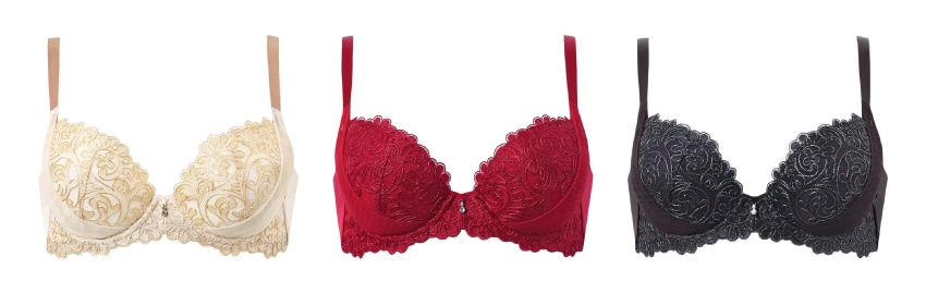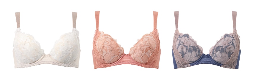 カップサイドからストラップまで連携させた「寄せ上げシート」で、土台を引き上げて高いバスト位置をキープ。さらにカップをサイドから押さえ、バストを中央に寄せ、谷間をメイク