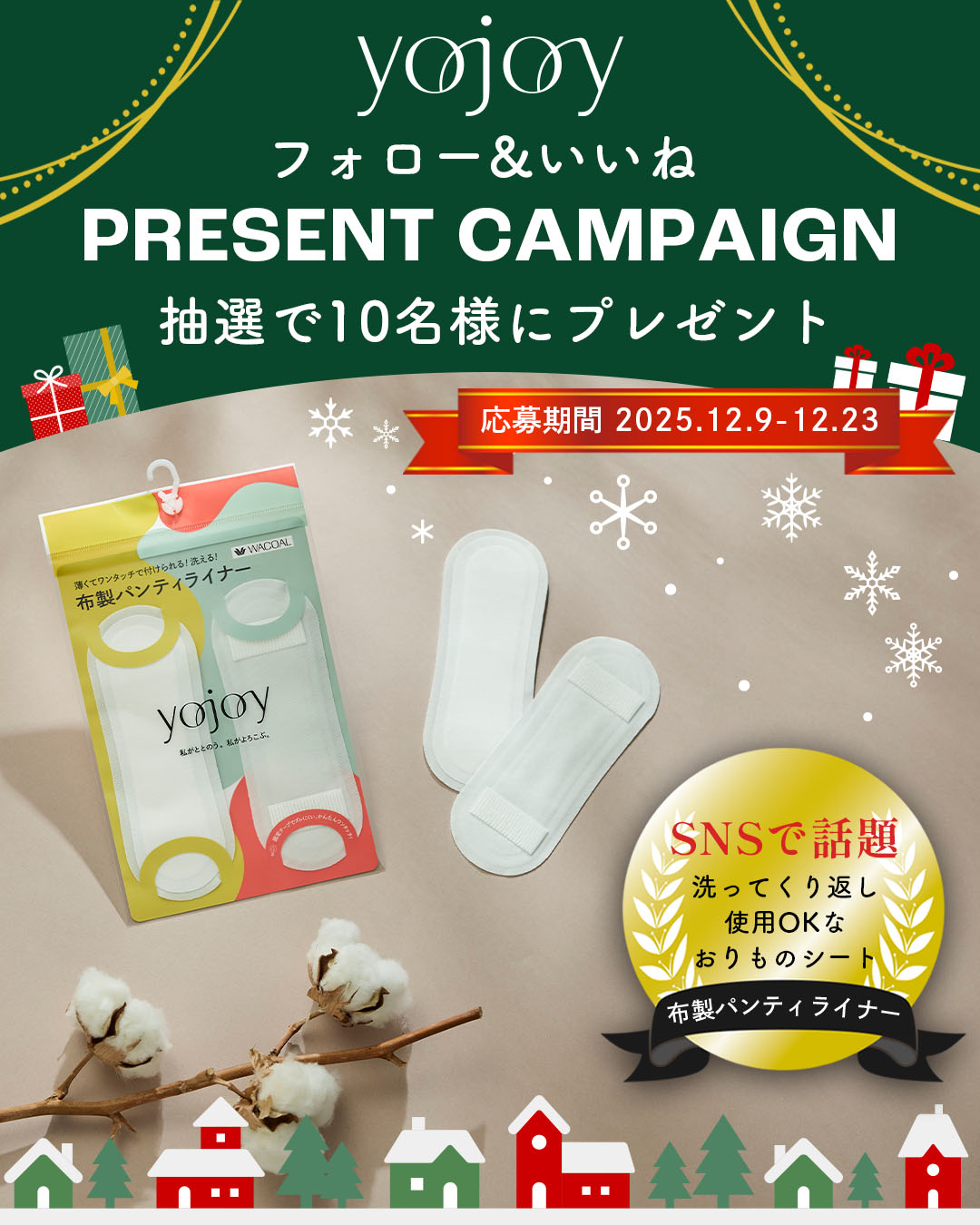 YOJOY公式インスタグラムを「フォロー」のうえ、キャンペーン投稿に「いいね!」をしてくださった方の中から抽選で【10名様】に、YOJOYの布製パンティーライナーをプレゼント!