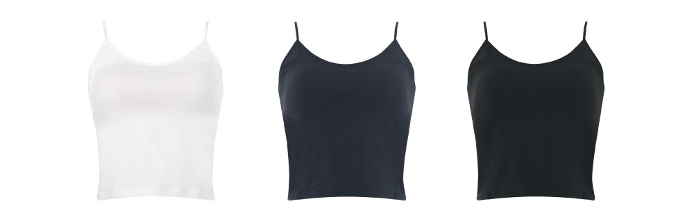 短め丈のデザインでインナーとしてはもちろん洋服感覚で着こなせるアイテム。ファッション性の高いスリムストラップ使用