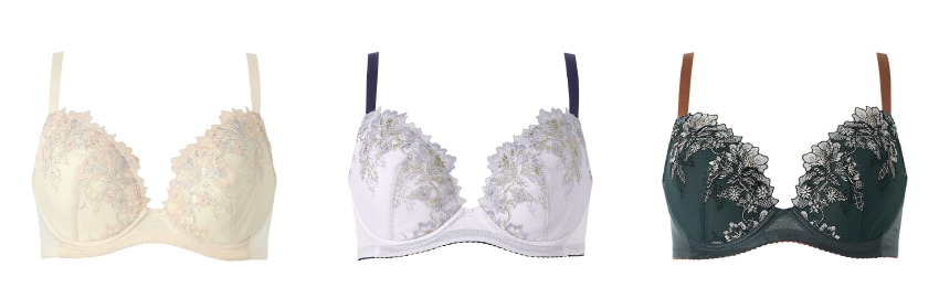 左右一体型の成型カップでバスト位置を安定させ、立体的なバストシルエットをキープ