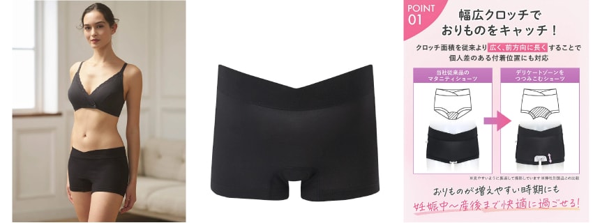 ●伸びのよい素材を使用し、コンパクトなルックスのマタニティ用ショーツ